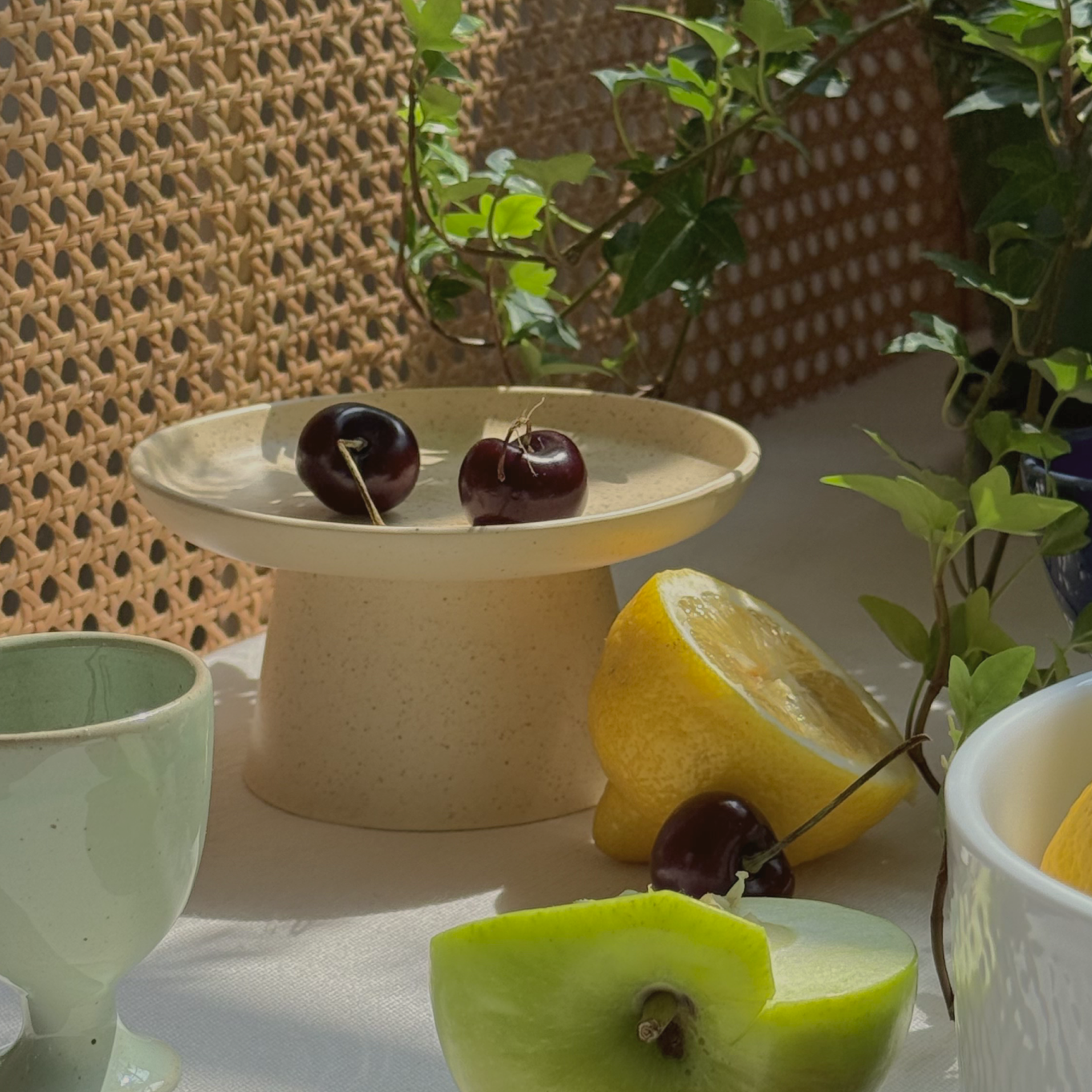 A petite pedestal finished in a glossy butter-yellow glaze with soft speckles. Just the right size for a cupcake, a stack of cookies, or small desserts, it brings a cheerful lift to everyday moments and gatherings alike.