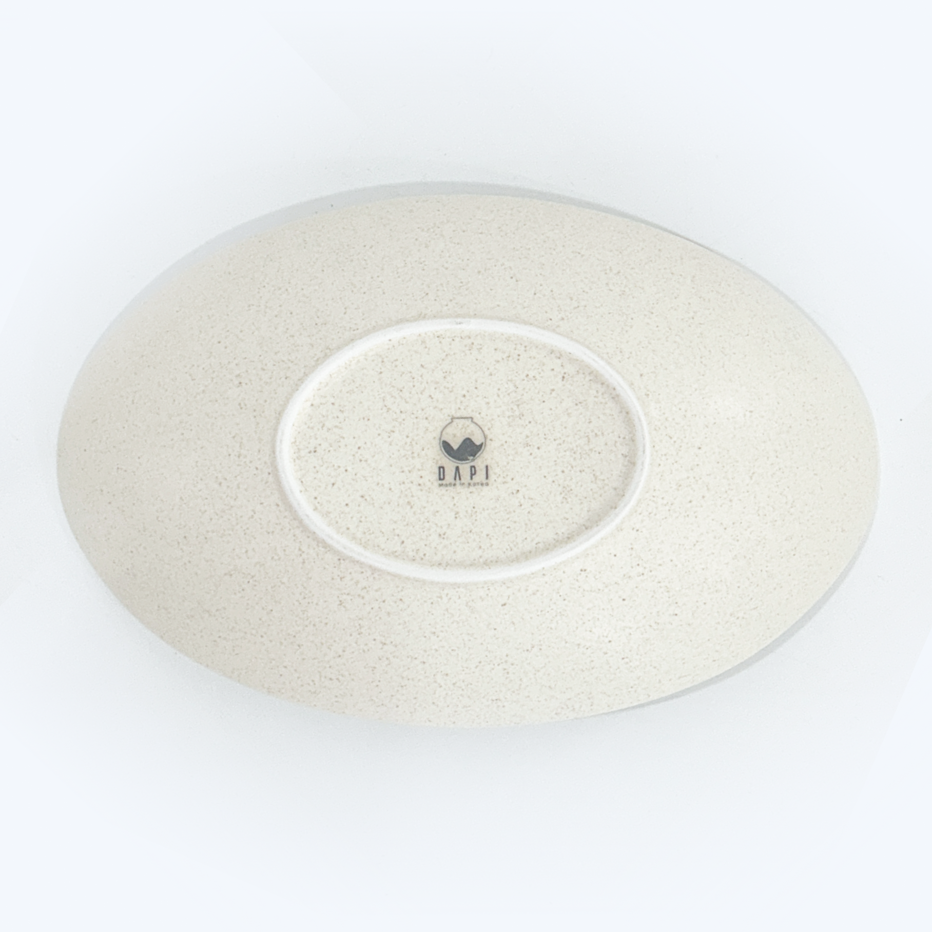 An oval-shaped bowl finished in a smooth ivory-yellow glaze. Light in weight and natural in form, it’s designed for everyday ease — from shared salads to a simple bowl of pasta. Its soft curves bring quiet warmth to the table.
