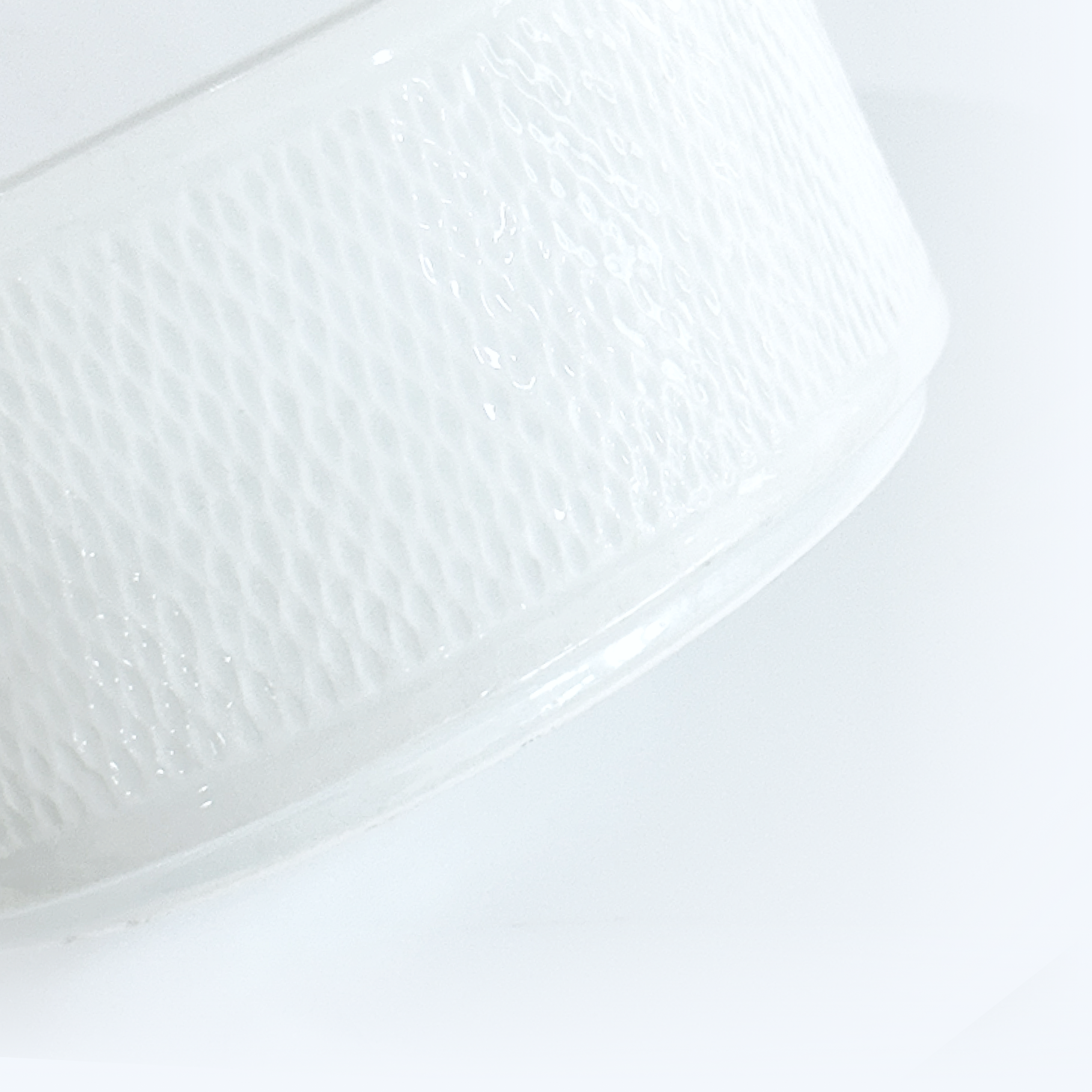 A tall, cylindrical bowl with a glossy ripple-textured glaze that reflects light softly. Its generous depth makes it practical for salads, stews, or shared dishes.